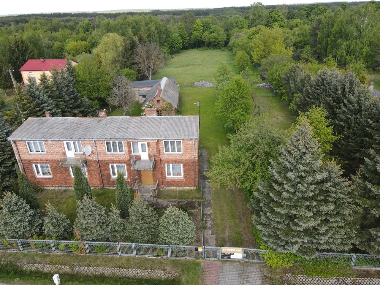Oferujemy na sprzedaż dom z lat 60 o powierzchni zabudowy 193m2, położony na pięknej, szerokiej działce o powierzchni 0,6268 ha ( szerokość ok. 37m) wraz z budynkami gospodarczymi. Nieruchomość posiada dwa niezależne wejścia, co czyni ją idealną dla dwóch rodzin lub jako inwestycję pod wynajem.