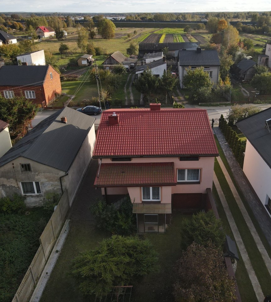 Dom został pobudowany w latach 80-tych z gazobetonu i cegły, ściany mają grubość ok. 38 cm i zostały ocieplone styropianem, co zapewnia dobrą izolację termiczną. Dach deskowany, pokryty blachodachówką. Okna PCV, a w kuchni i na strychu – drewniane. Na strych prowadzą lane schody, co stanowi solidne i trwałe rozwiązanie.