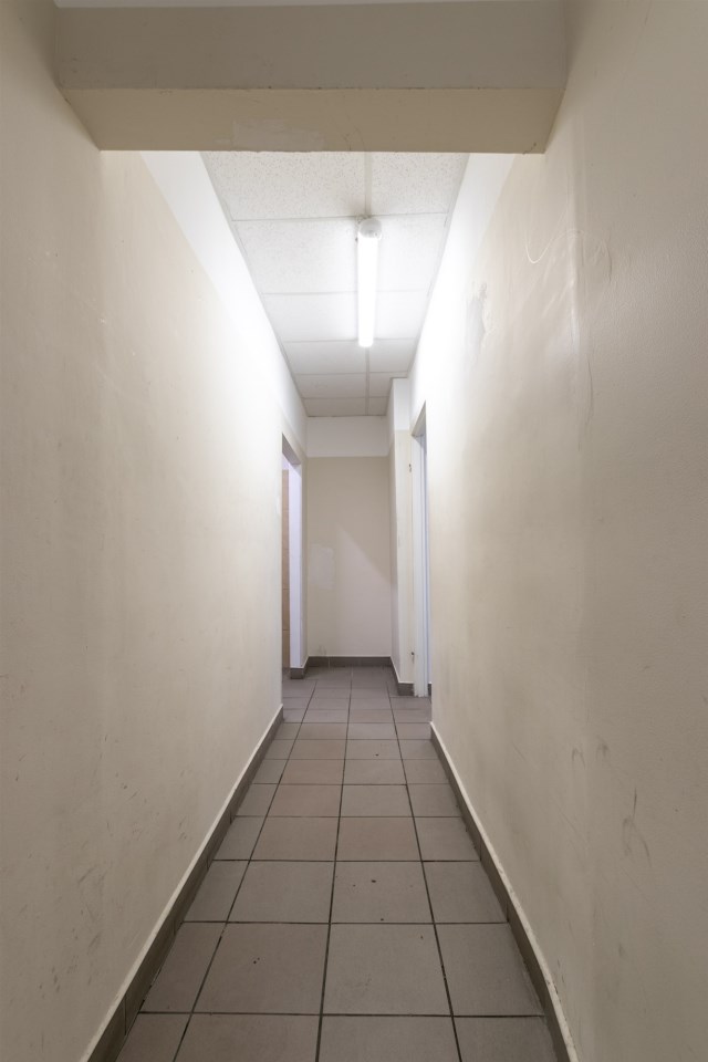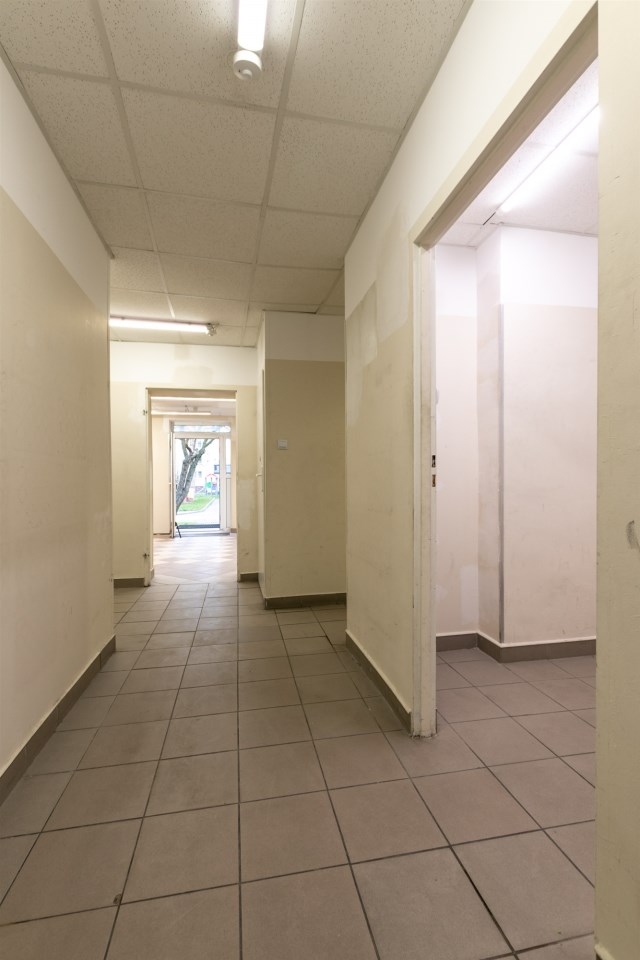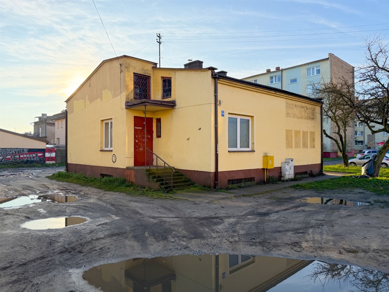Był wynajmowany na sklep Żabka w związku z tym ściany w wewnątrz budynku zostały zaadoptowane pod funkcjonowanie tej działalności.