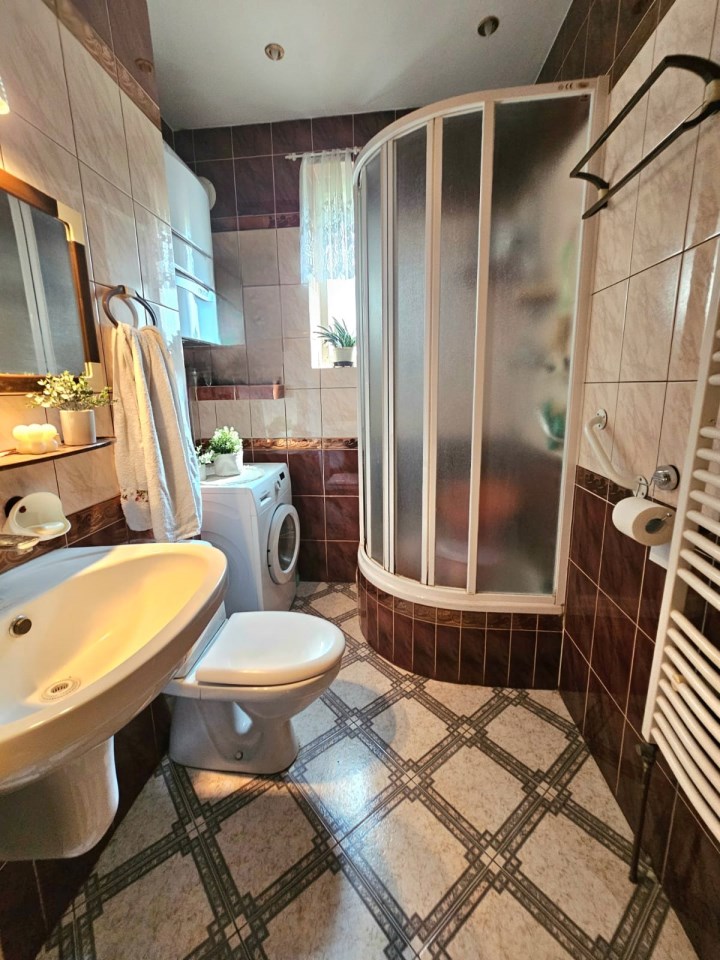 Ogrzewanie gazowe zapewnia piec marki Vaillant, z elektronicznym sterowaniem umieszczonym na korytarzu, co pozwala na wygodne zarządzanie temperaturą w całym domu. Do dyspozycji jest także strych z betonowymi schodami, dający dodatkową przestrzeń do przechowywania.