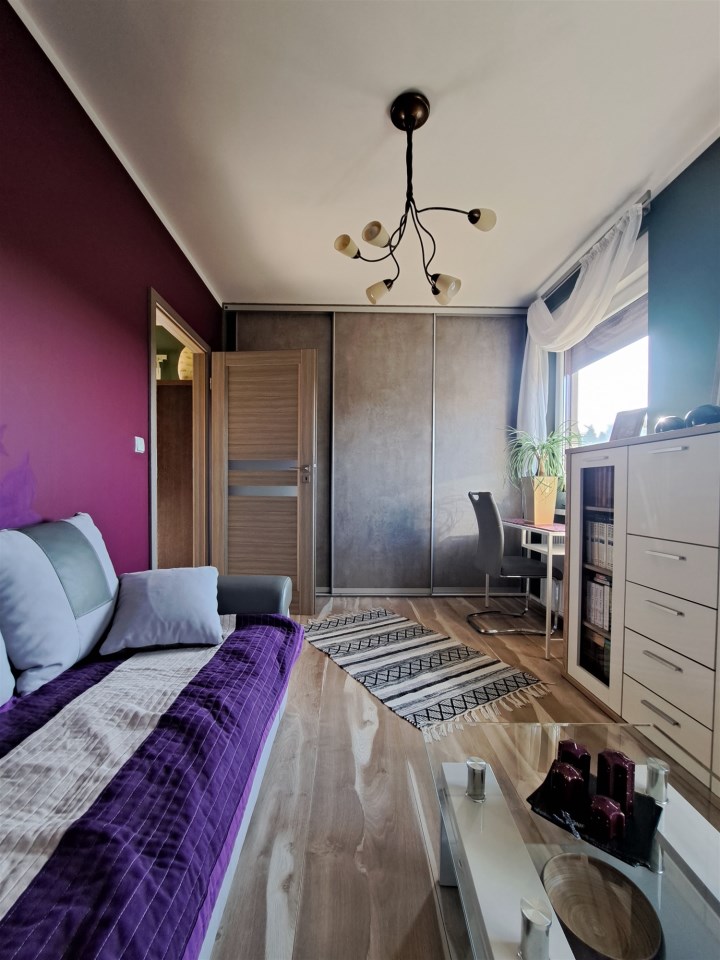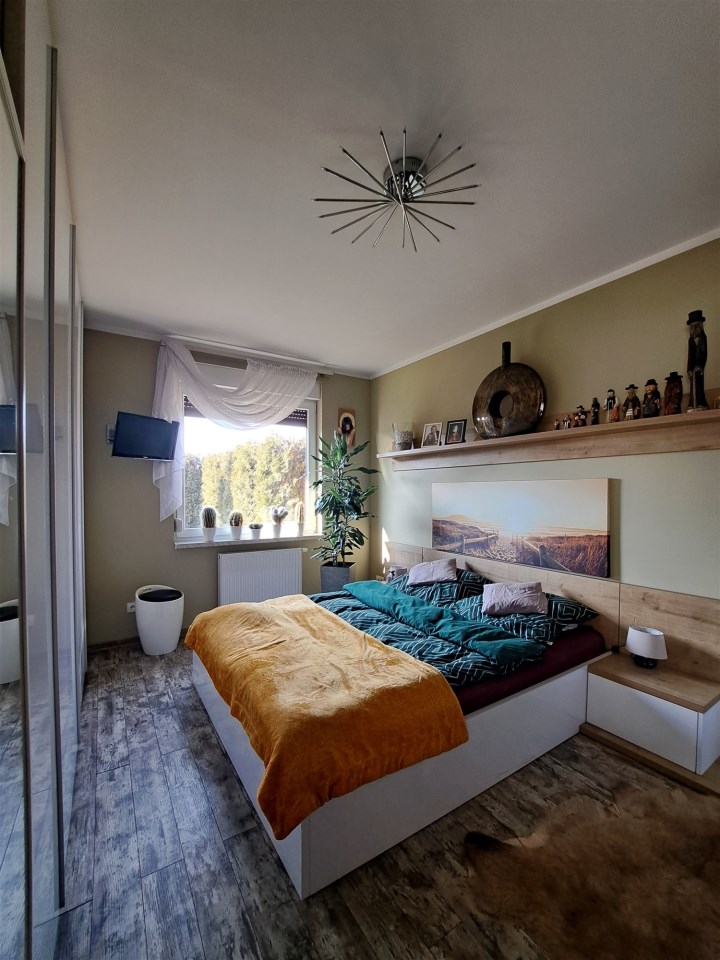NOWOCZESNOŚĆ i KOMFORT na KAMERALNYM OSIEDLU w ŚWIERKLAŃCU Oto dom o powierzchni całkowitej 90 m² świetne miejsce, wszędzie blisko - czego chcieć więcej. Doskonałe miejsce do zamieszkania, a być może i do pracy. W domu bez wątpienia można urządzić biuro. Jednak skupmy się na MIESZKALNYCH walorach nieruchomości: bryła budynku - BLIŻNIAK - na sprzedaż 1/2 parterowego domu o powierzchni użytkowej 75 m2, garaż to dodatkowa powierzchnia w bryle domu, przynależne prywatne miejsce parkingowe. Dom usytuowany jest na zagospodarowanej w minimalistycznym stylu, ogrodzonej działce z nasadzeniami o powierzchni 313 m2. Taki sposób aranżacji ogrodowej przestrzeni to również nie lada wyzwanie dla miłośników przydomowych ogródków. Na działce posadowiony jest domek narzędziowy. Sam możesz zadecydować o dalszym sposobie aranżacji i urządzenia swojego ogródka. Możesz również zachować dotychczasowy sposób urządzenia ogródka. Przestrzeń domu została zaprojektowana na otwartym planie. Do budynku wchodzimy holem z wejściem do garażu. Następnie znajdujemy się w salonie, w którym zastosowano nowoczesne rozwiązanie jakim jest połączenie ze świetnie wyposażonym, eleganckim aneksem kuchennym. W domu zastosowano funkcjonalny rozkład pomieszczeń dzieląc przestrzeń na strefę ogólnodostępną oraz prywatną zlokalizowaną w głębi. W salonie zaaranżowano harmonijny i funkcjonalny element architektoniczny, tzw. wykusz w którym urządzono jadalnię. Forma nie tylko zwiększa powierzchnię mieszkalną, ale również doświetla dom naturalnym światłem. Na zewnątrz jako wyróżniający się element architektoniczny urozmaica elewację budynku. Bezpośrednio z salonu wychodzimy na taras wyłożony kostką betonową. Na tarasie można delektować się rodzinnymi posiłkami lub w zaciszu ogródka odpoczywać w promieniach słońca. W salonie zastosowano wysoki sufit, tzw. sufit katedralny, nadając wnętrzu trójwymiarowości i nowoczesnego sznytu. Salon prezentuje się niebanalnie i daje niewyobrażalne możliwości aranżacyjne. Wysokie wnętrze niczym nas nie ogranicza. Swoje miejsce znajdą tu wysokie rośliny, jak również kilkumetrowa choinka świąteczna. A może masz ochotę na potężne regały wypełnione po brzegi książkami? Obecny sposób aranżacji urządzenia salonu to pomysł dotychczasowego właściciela. Dopełnieniem wyjątkowej estetyki salonu jest designerskie oświetlenie sufitowe i stojąca lampa. Ty możesz zamieszkać wykorzystując dotychczasowe rozwiązania zagospodarowania salonu lub stworzyć własną przestrzeń wykorzystując możliwości tego domu. W salonie i prowadzącym do niego holu rozprowadzono ogrzewanie podłogowe. Sercem urządzonego salonu jest nowoczesny kominek, przy którym w długie wieczory można zrelaksować się przy dźwiękach trzaskającego drewna. Część prywatną stanowią sypialnia i gabinet z oknami wychodzącymi na ogród. W pokojach zaprojektowano i urządzono przestronne szafy wnękowe. Nieruchomość bez obciążeń z urządzoną księgą wieczystą. Nieruchomość położona jest na terenie osiedla o nowoczesnej zabudowie, tuż przy lesie. Okolica cicha, z fajnymi widokami, niedalekim sąsiedztwem lokalnej perełki, a więc świerklanieckiego parku pałacowego. Natomiast w odległości zaledwie 100 m od domu można swobodnie pospacerować w leśnym zagajniku. W nieco dalszej lokalizacji można odreagować trudy dnia korzystając z atrakcji lokalnych zbiorników wodnych Nakło-Chechło. Szybko i wygodnie można dotrzeć do lokalnych sklepów, marketów Lidl i Biedronka oraz przystanku autobusowego skomunikowanego w kierunku pobliskich Piekar Śląskich i Tarnowskich Gór, a także Katowic i Bytomia. W okolicach parku świerklanieckiego znajduje się strefa przesiadkowa i ładowarki dla samochodów elektrycznych. W bliskiej odległości znajduje się szkoła podstawowa przedszkole. Na terenie osiedla usytuowane są niepubliczne przedszkole i żłobek.
