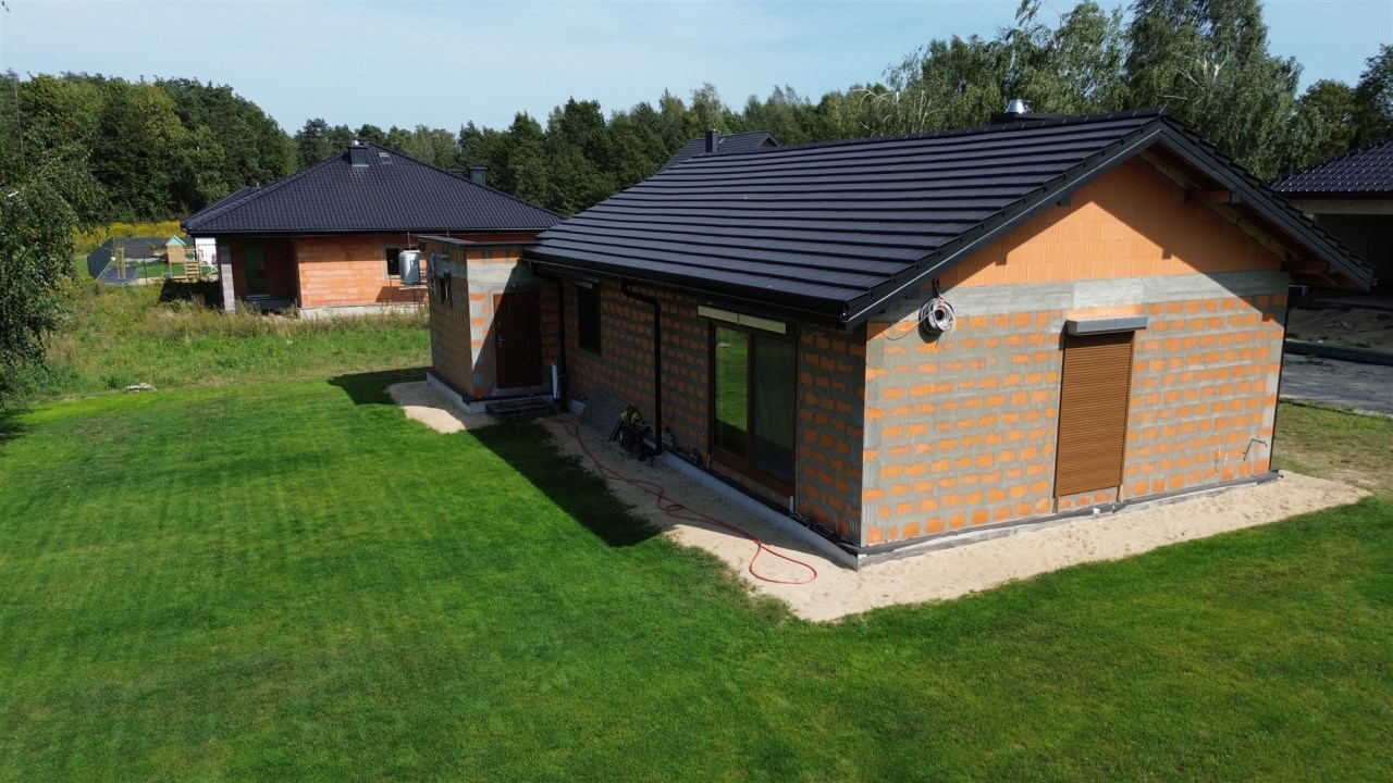 Dom budowany przez osobę prywatną „dla siebie” z bardzo dobrych materiałów min cegła ceramiczna (szlifowana) Porotherm, dach dwuspadowy kryty dachówką ceramiczną, okna trzyszybowe w kolorze orzechowym z roletami. Wysoka jakość wykończenia wewnątrz min: na całości ogrzewanie podłogowe, gres hiszpański na podłodze, tynki knauf + gładź, farby firmy Flugger, drzwi bezprzylgowe, klimatyzacja, ocieplenie poddasza wełną knauf 30cm itp., w łazience włoska glazura, armatura Kludi, kotłownia – piec gazowy dwufunkcyjny.