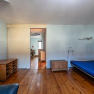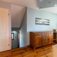Dach ocieplony, pokryty blachą. Okna PCV.