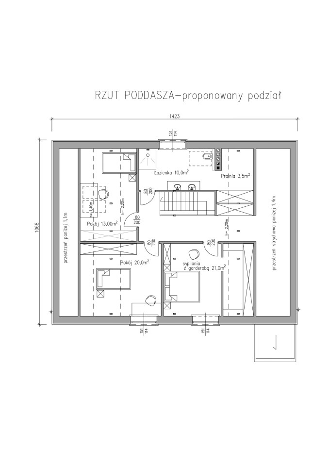 Ściany piwnic z bloczków betonowych, parter i poddasze z pustaków gipsowych K-35, docieplenie styropianem