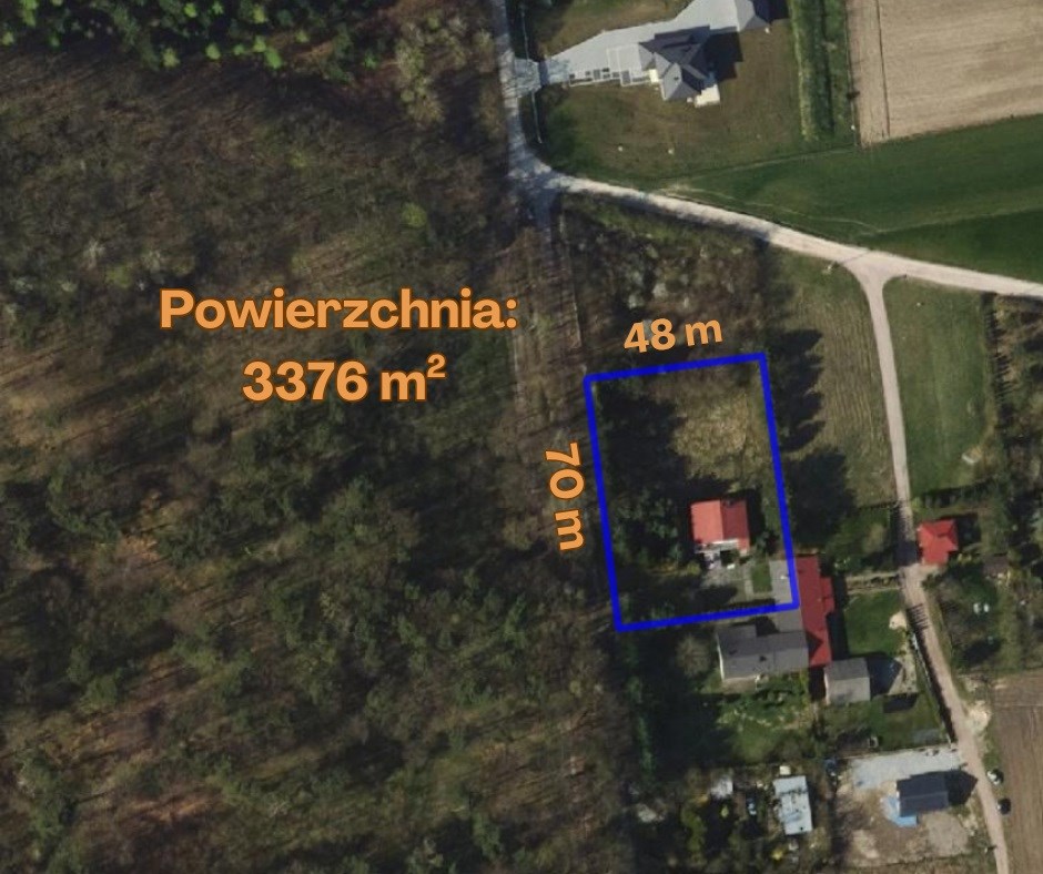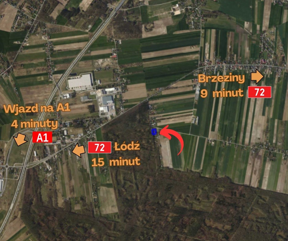 Dojazd: droga asfaltowa + 90 m droga gminna gruntowa
