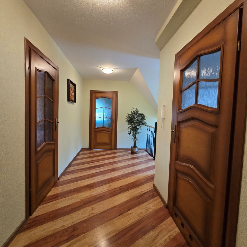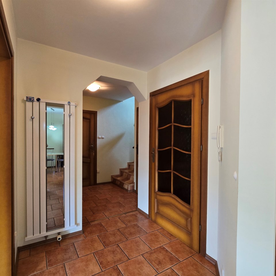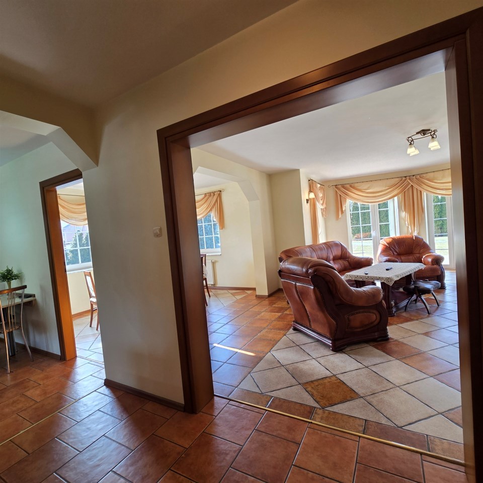 W pokojach podłogi pokryte panelami, natomiast w kuchni. łazience, WC, wiatrołapie z płytek ceramicznych - terakota.