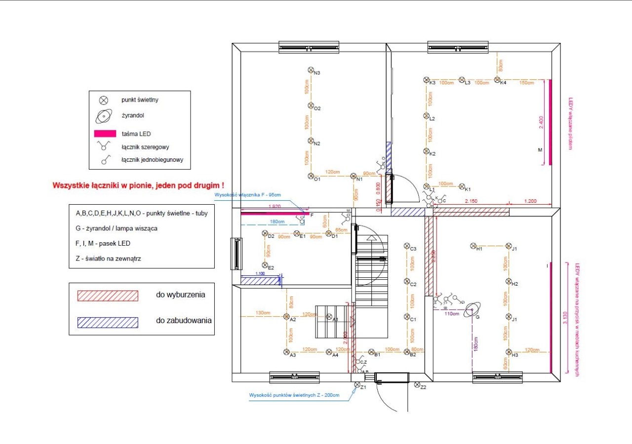 Rozprowadzone zostały również wyjścia pod ogrzewanie podłogowe, alarm i monitoring oraz bramę elektryczną. Internet - światłowód ,,Księżyc” w budynku.