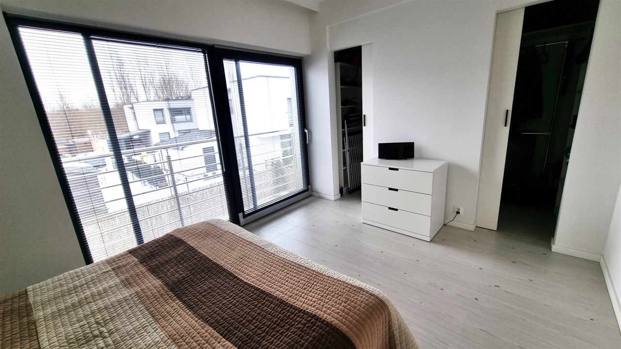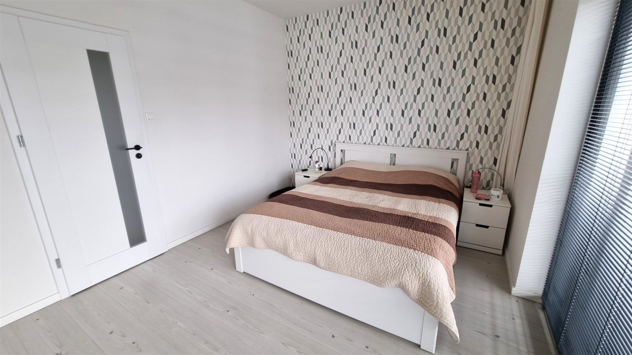 I SYPIALNIA z łóżkiem małżeńskim, szafki nocne, przy sypialni GARDEROBA, podłoga panele, ściany gładzie gipsowe, duże nowoczesne okna PCV z balkonem francuskim