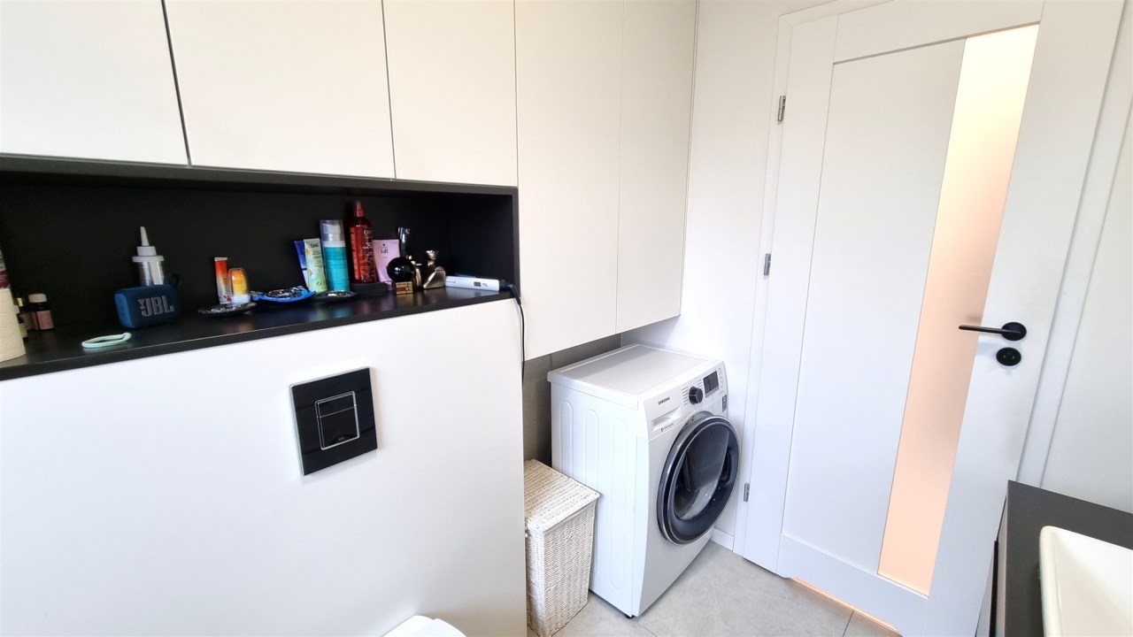 ŁAZIENKA z wanną , sedes, lustro, umywalka, szafki łazienkowe w zabudowie, pralka