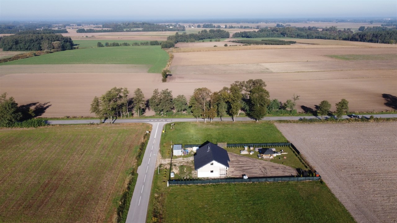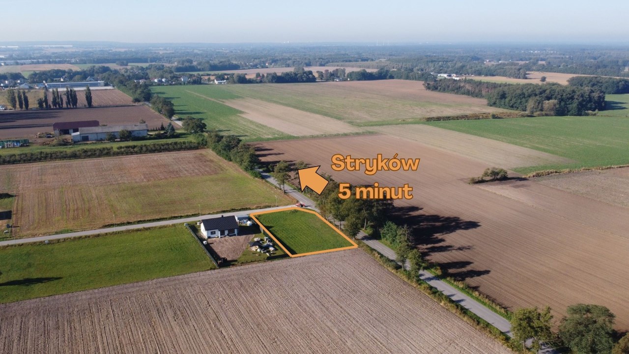 Działka znajduje się bezpośrednio przy asfaltowej drodze gminnej, z jednej strony graniczy z nową zabudową jednorodzinną. Otaczają ją pola, zabudowania jednorodzinne oraz rozległe tereny zielone co zapewnia piękne widoki i walory przyrodnicze. Okolica jest cicha, idealna dla osób szukających przestrzeni i spokoju z dala od miejskiego zgiełku, jednocześnie z szybkim dojazdem do Strykowa.