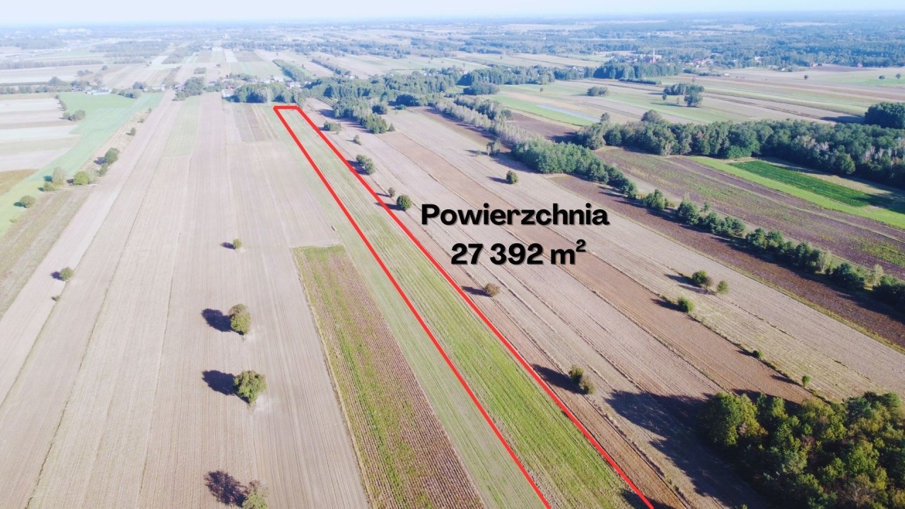 ✅Działka o regularnym kształcie prostokąta ma powierzchnię 27 392 m2 i wymiary: 25 m x 1149 x 24 x 1143 m.