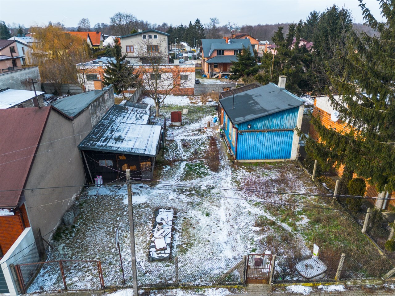 Działka o regularnym, prostokątnym kształcie, przeznaczona pod zabudowę mieszkaniową. Teren jest ogrodzony siatką oraz częściowo zagospodarowany. Na działce znajduje się budynek mieszkalny oraz budynki gospodarcze, które mogą pełnić funkcję jako zaplecze gospodarcze, magazynowe lub zostać przeznaczone do rozbiórki pod nową inwestycję-w zależności od potrzeb nowego właściciela.