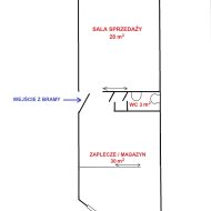 - POMIESZCZENIE II - ZAPLECZE(MAGAZYN) - ok. 30 m, podłoga terakota, ściany gładzie, okno od strony podwórka - wejście do tego pomieszczenia z bramy, w środku pomieszczenia ścianka z płyt do ewentualnego usunięcia,