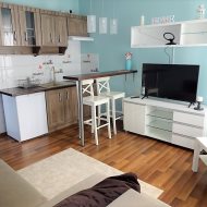 - WNĘKA KUCHENNA: szafki kuchenne, zlewozmywak, płyta kuchenna 2 palniki, lodówka, bufet z 2 stołkami barowymi