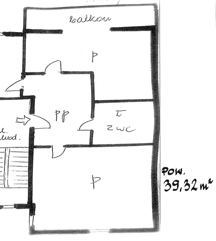 Mieszkanie o pow. 39,32 mkw położone na 2 piętrze, w bloku z cegły, składające się z jednego pokoju, kuchni (obecnie funkcjonuje jako pokój), łazienki z wc oraz korytarza. Okna PCV. Wystawa okien na dwie strony świata - północ i południe. Mieszkanie jest do remontu, to nowy właściciel będzie miał przyjemność zadecydować o aranżacji wnętrz nabywanego lokalu. Istnieje możliwość powiększenia mieszkania o sąsiedni lokal, uzyskując duże ok. 110-metrowe mieszkanie idealne na własne cele mieszkaniowe, jak również pod wynajem (aż 5 pokoi+kuchnia).