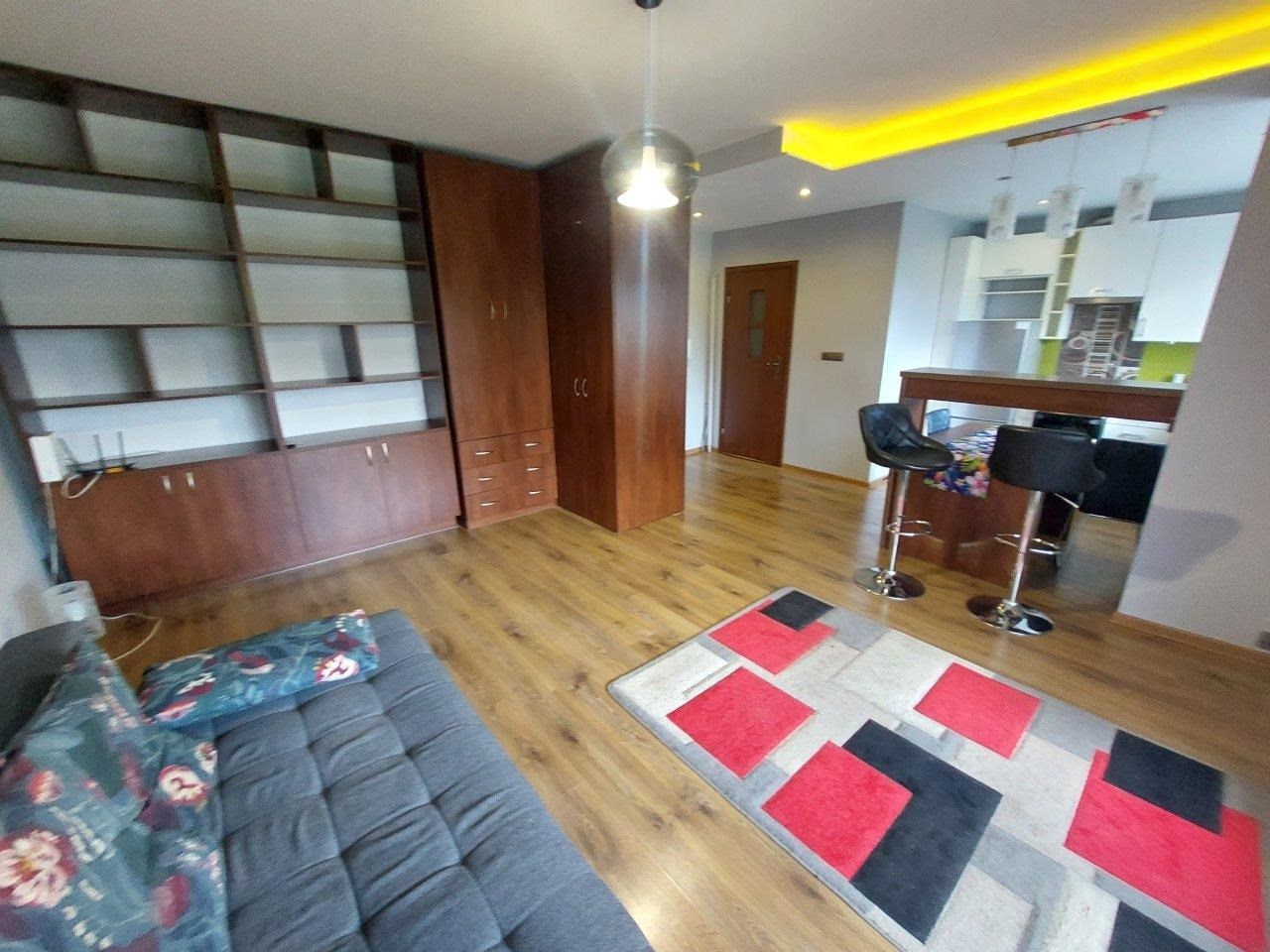POKÓJ -Na ścianach gładzie na podłodze panele duża szafa, regał, kanapa z funkcją spania.