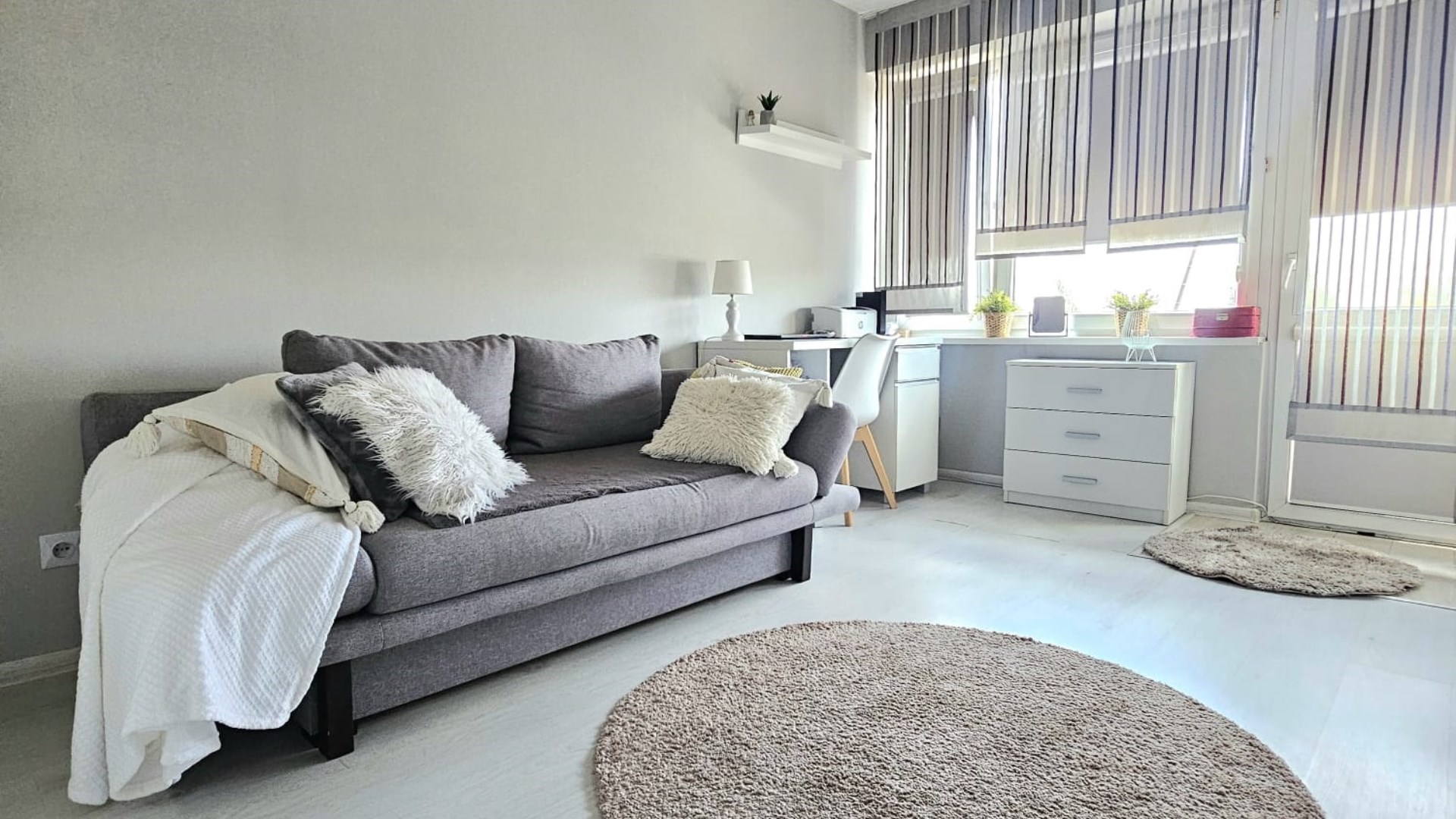 Mieszkanie jest dwustronne, dzięki czemu wnętrza są doskonale doświetlone przez cały dzień. Okna skierowane są na wschód i zachód. W mieszkaniu większość mebli zostaje. Mieszkanie składa się z dużego salonu o pow. 25m2, pokoju z oknami za wschód i szafą wnękową o pow. 6,5m2, pokoju z balkonem o pow. 14,50m2, wc, osobnej łazienki z prysznicem, kuchni widnej z oknem oraz przedpokoju z szafą wnękową. W całym mieszkaniu gładzie, częściowo tapeta, która komponuje się z wystrojem wnętrza.