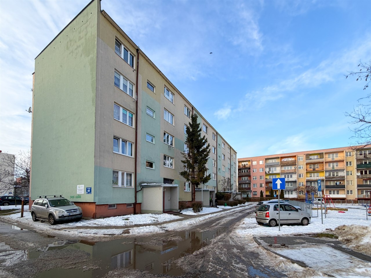 Blok ten jest ocieplony i otynkowany. Miejsca parkingowe przed blokiem, klatka schodowa zadbana.