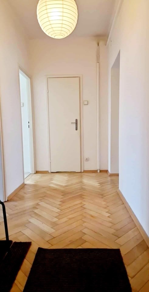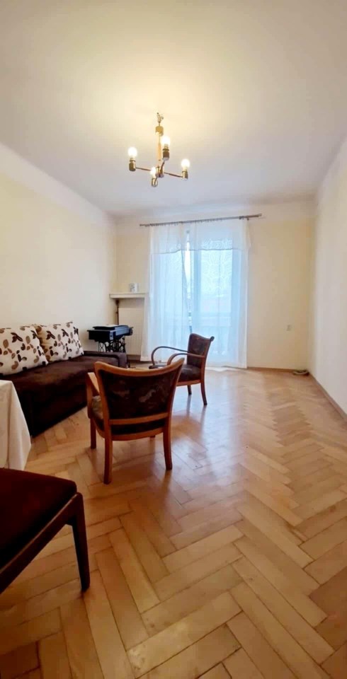 Mieszkanie dwupokojowe w pełni rozkładowe, ustawne, widne pokoje. Jeden pokój na planie kwadratu 3,6x3,6; drugi prostokąta 4,7x3,5. Wysokość w pomieszczeniach 2,75 m. Na podłodze ładny bukowy parkiet, po gruntownej renowacji czyli ponownym zerwaniu, przełożeniu, cyklinowaniu i polakierowaniu. Mieszkanie do odmalowania i do zamieszkania. W jednym pokoju jest wbudowana szafa wnękowa, z zamykanym biurkiem. W kuchni nowe meble pod wymiar. Łazienka z wanną, umywalką i wc. Załączony orientacyjny rzut mieszkania.