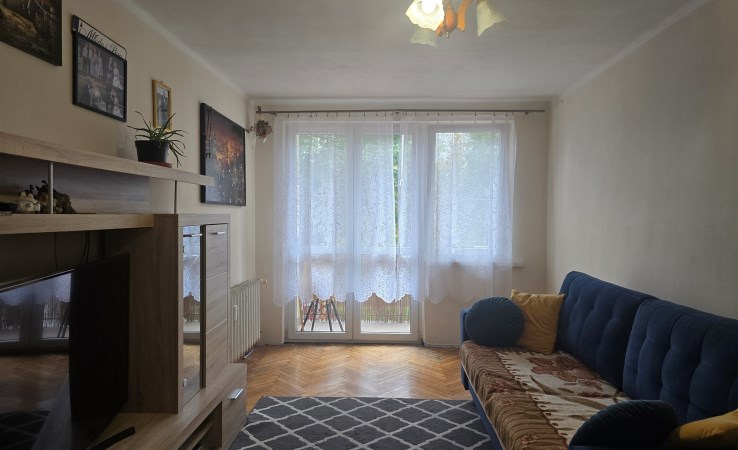 Na sprzedaż trzypokojowe mieszkanie o powierzchni 64m2 z dużym balkonem typu loggia z wyposażoną kuchnią (kuchenka, lodówka, piekarnik), w łazience pralka.