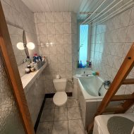 - łazienka 3m2 z oknem na północ ( nad całą łazienka antresola), ogrzewanie grzejnik elektryczny konwektor 500W, na podłodze terakota, ściany glazura