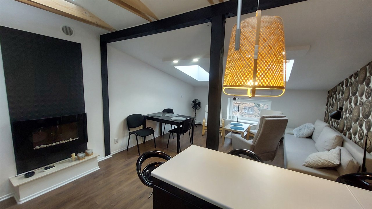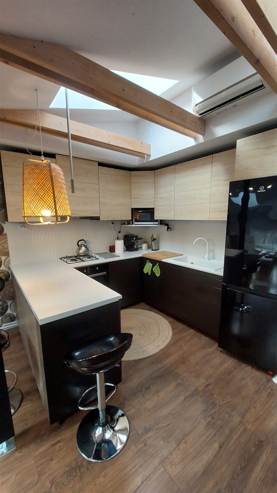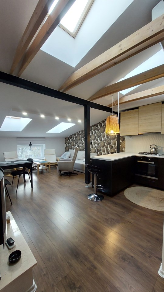 Całe mieszkanie jest fantastycznie doświetlone pięknymi oknami dachowymi.