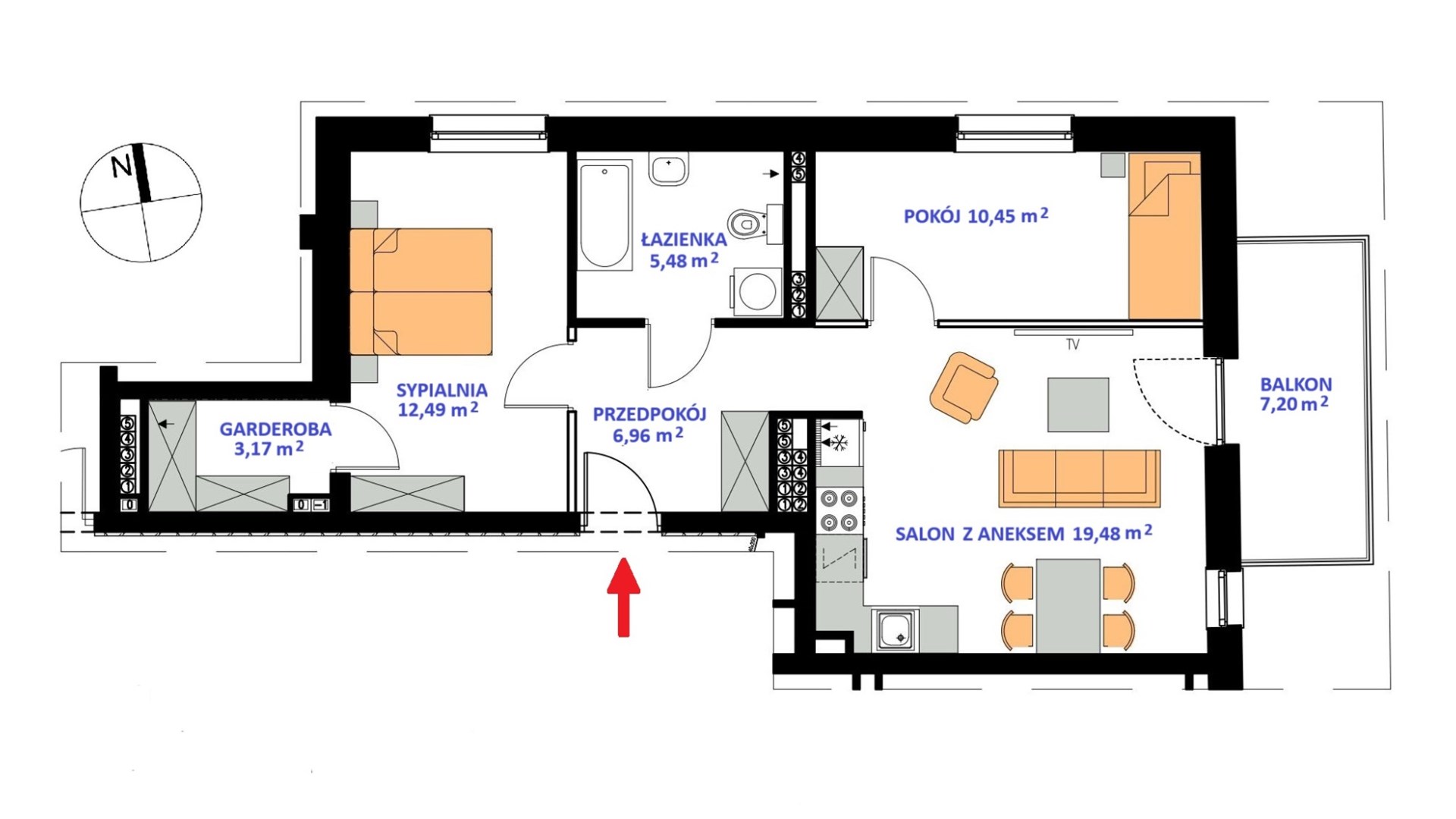 - SALON Z ANEKSEM KUCHENNYM: 19,48 m
