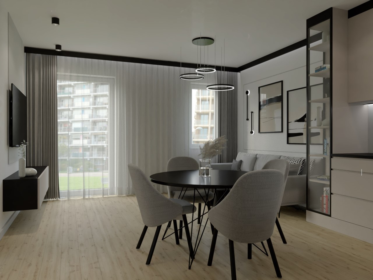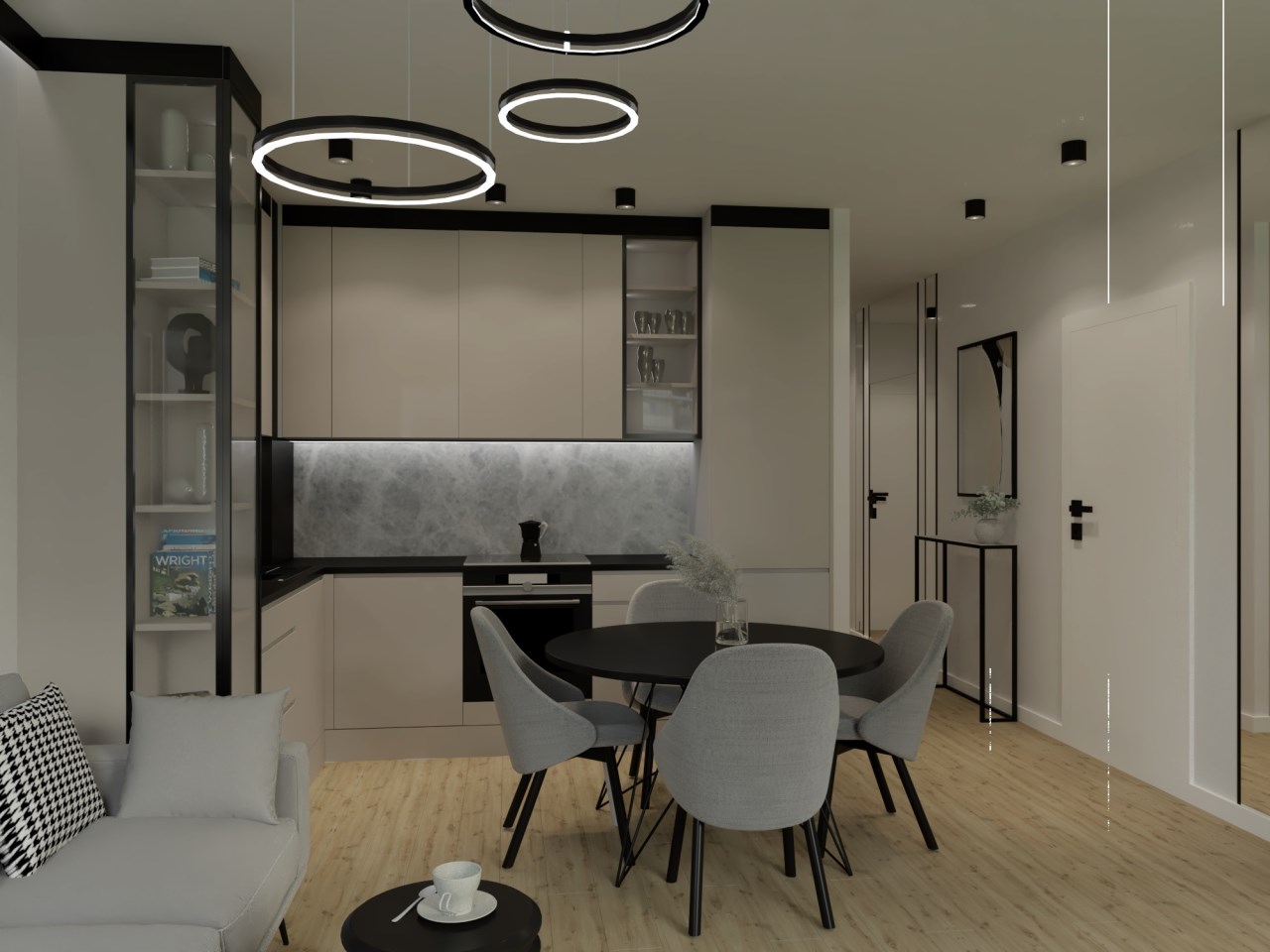 Dla apartamentu przygotowano gotowy projekt architektoniczny wykończenia wg załączonych wizualizacji na zdjęciach !!!