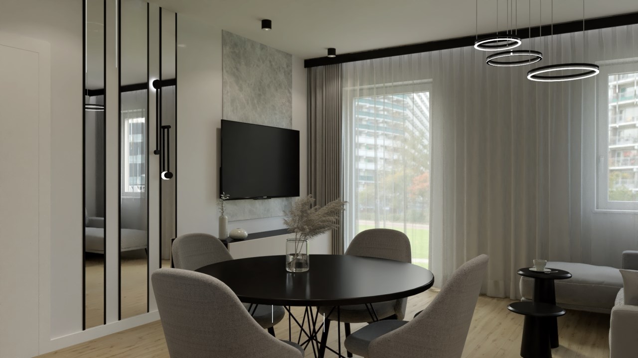 Dla apartamentu przygotowano gotowy projekt architektoniczny wykończenia wg załączonych wizualizacji na zdjęciach !!!