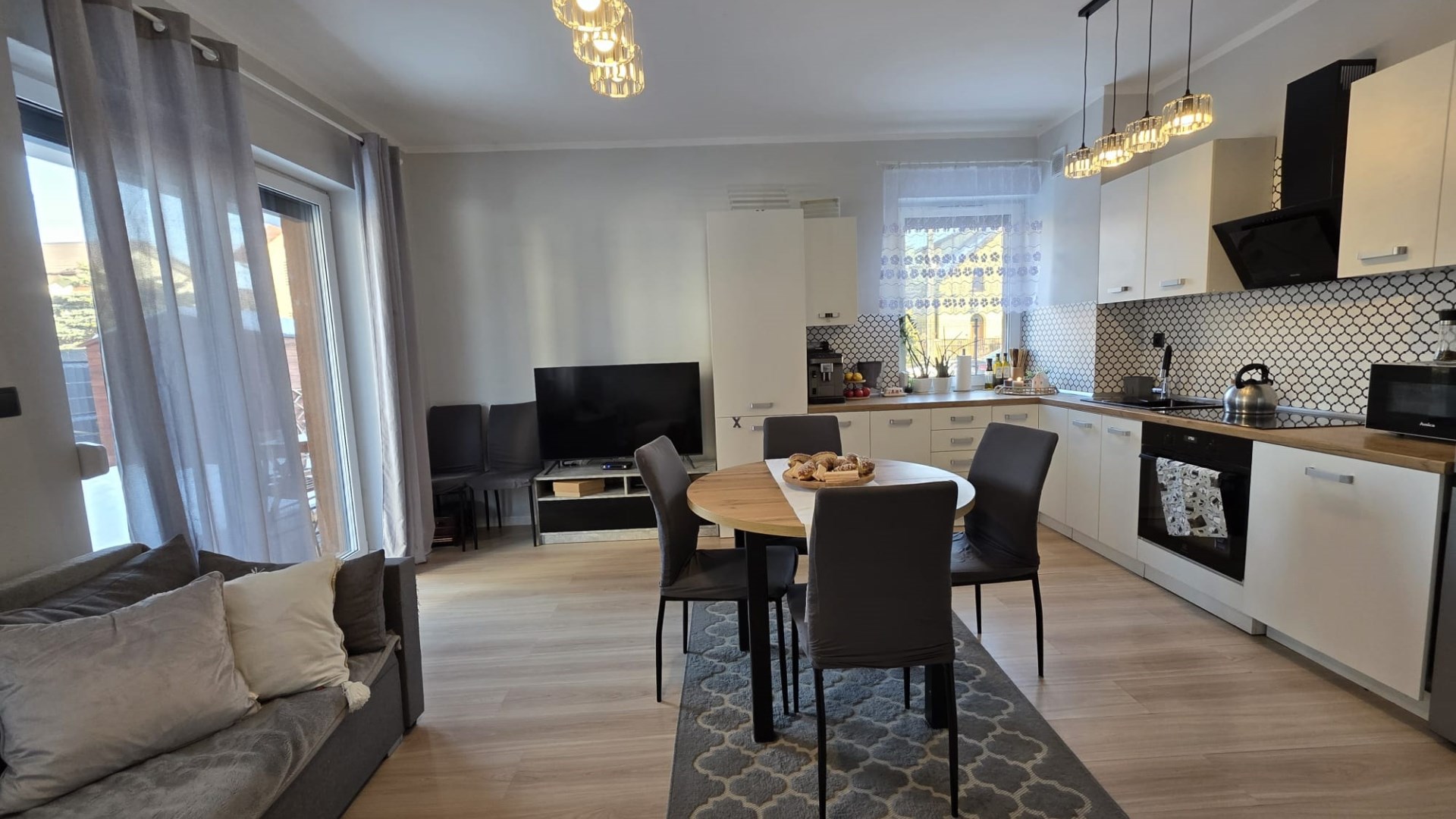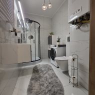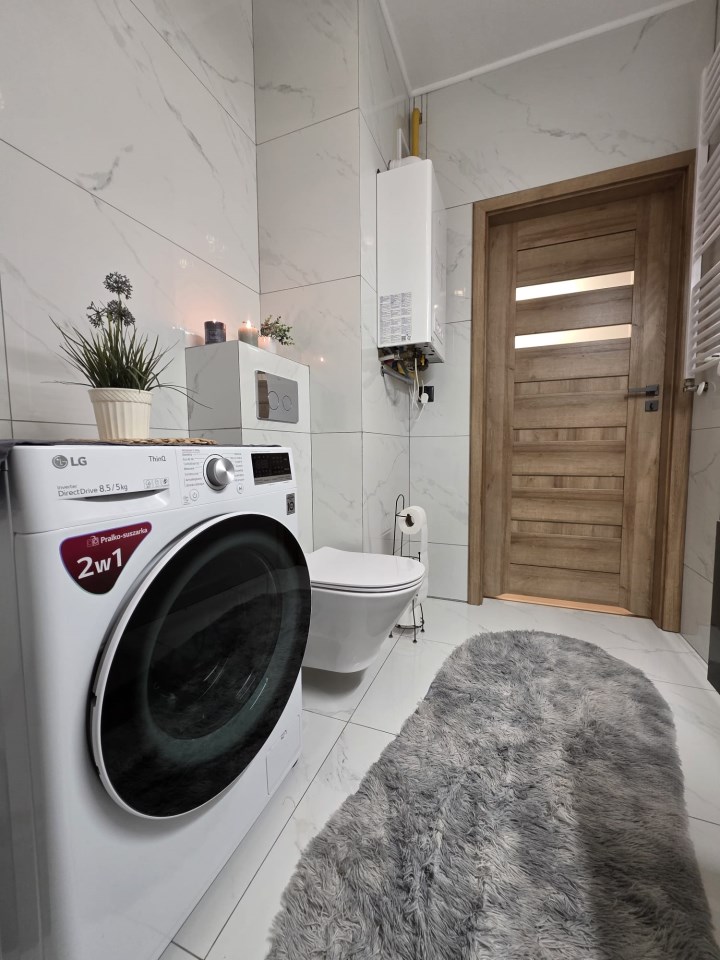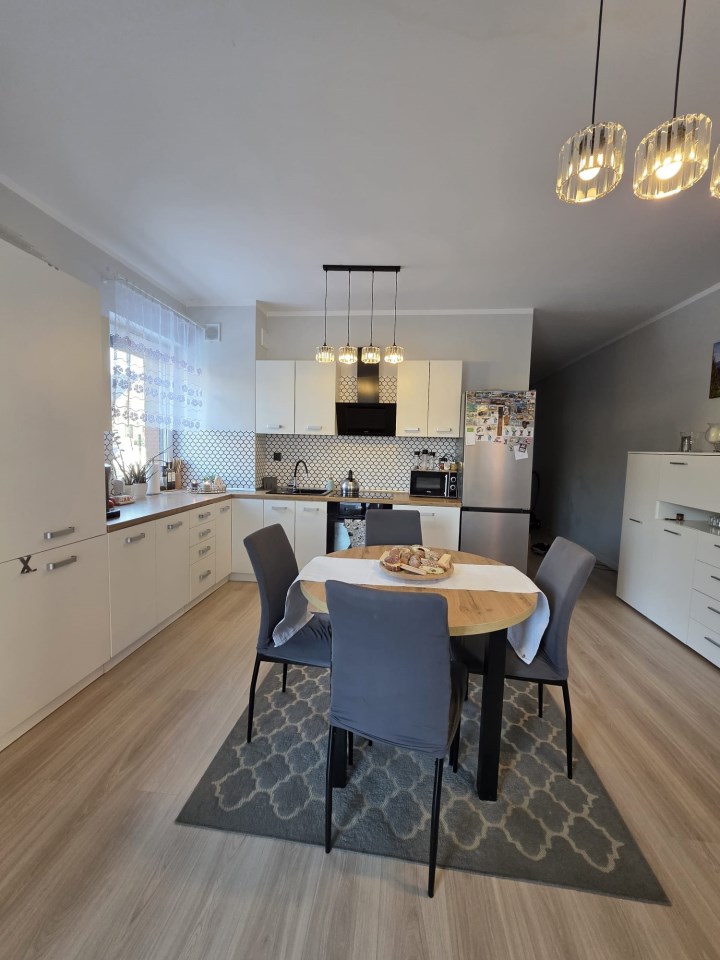 Okna aluminiowe, rolety zewnętrzne oraz nowoczesne wykończenie zapewniają komfort i bezpieczeństwo. Ogrzewanie gazowe oraz ciepła woda z pieca gazowego gwarantują niskie koszty utrzymania.