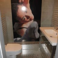 oryginalne wykończenie, płyty aluminiowe na podłodze i na ścianach, umywalka, sedes typu Geberit,