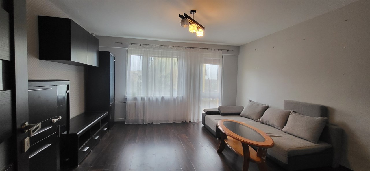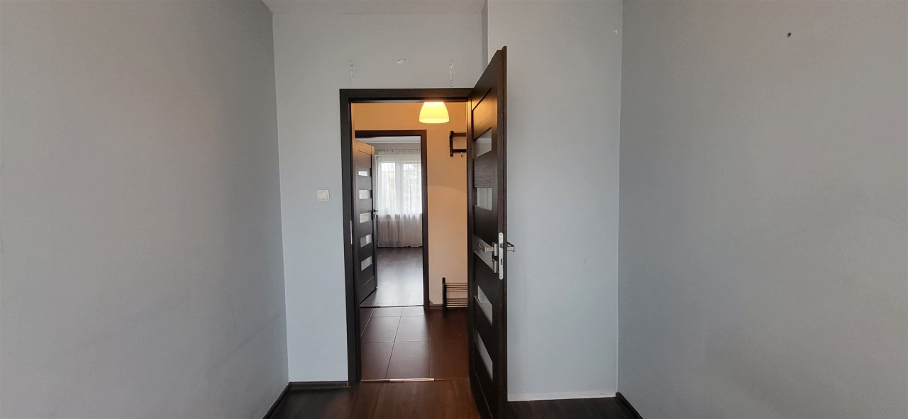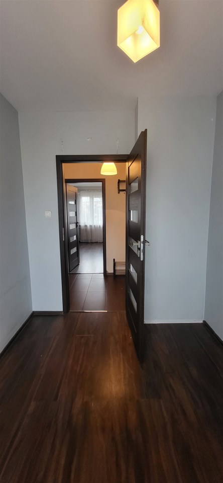 Składa się z pokoju dziennego z wyjściem na balkon, kuchnię widna z oknem, Dwie sypialnie, łazienka wyposażona w wannę osobno z WC. W kuchni i łazience glazura i terakota nowego typu. Na podłogach panele, ściany pokryte gładzią gipsową i farbą. Do mieszkania przynależy piwnica.