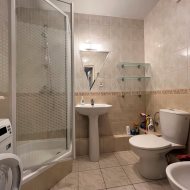 - ŁAZIENKA Z WC: glazura, terakota, kabina prysznicowa, nowa pralka, sedes, bidet, umywalka z nogą, półki szklane,