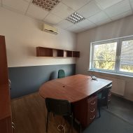 Budynek jest ocieplony, okna PCV, w pomieszczeniach na podłogach panele. Biura umeblowane, jeden gabinet z systemem alarmowym, a cały plac monitorowany.